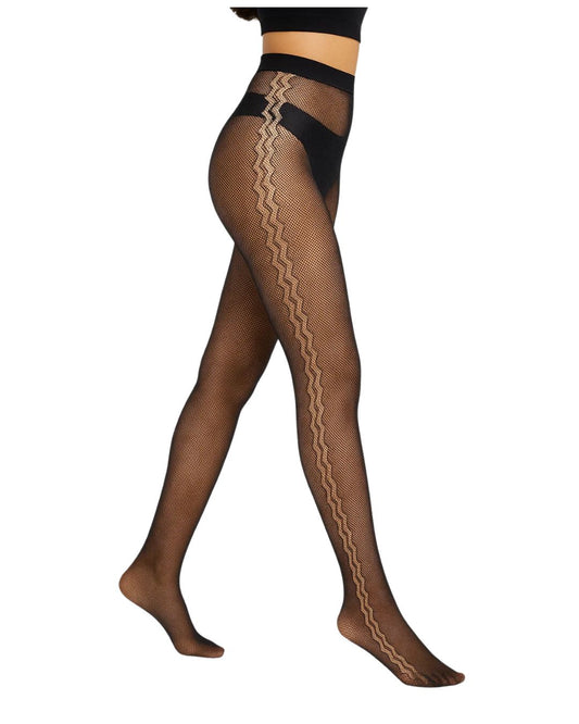 Description: Sajiero brings you a stunning pair of black lace net leg stockings that add...