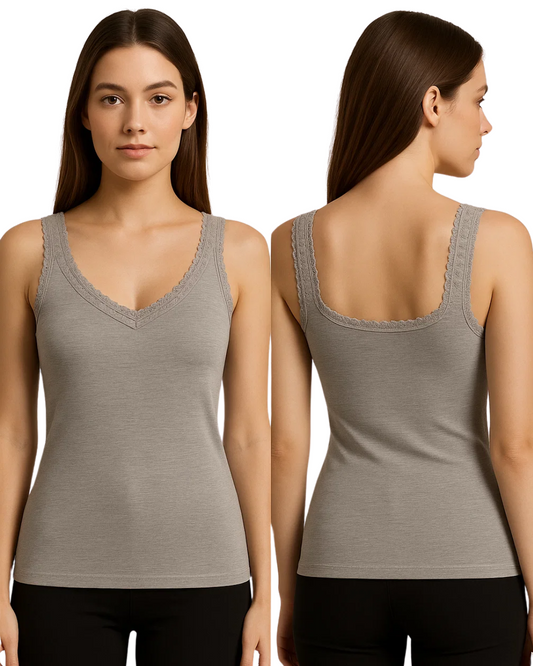 Description: The Velira Lace Tank blends soft elegance with everyday comfort. Featuring delicate lace detailing...