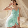 Delicate and romantic, the Roselle Charm nightdress is crafted from sheer floral lace that gently hugs the body with a soft, feminine flow. The flattering V-neckline is detailed with playful ruffles, while a side satin bow adds a charming accent. With its flirty asymmetrical hem and dreamy pastel tones, this piece brings elegance and allure to your nighttime wardrobe.