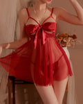 Velin Bow is a graceful and flirty baby doll dress crafted in sheer, lightweight fabric with a satin bow centerpiece. Its soft flowy silhouette and detailed strap design offer a delicate, elegant charmāideal for special evenings or relaxing in style.