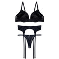 - 3-Piece Set – Includes Bra, Thong & Garter Belt